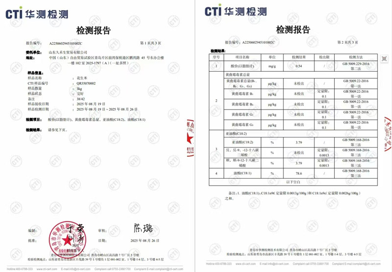 从种植到上市,我们的巴西高油酸花生全程执行严苛的质量管控,确保所有指标均对标国家及行业高标准,检测合格后方可放行,凭借其卓越产品品质,通过国内外多家权威机构的多维度检测认证。